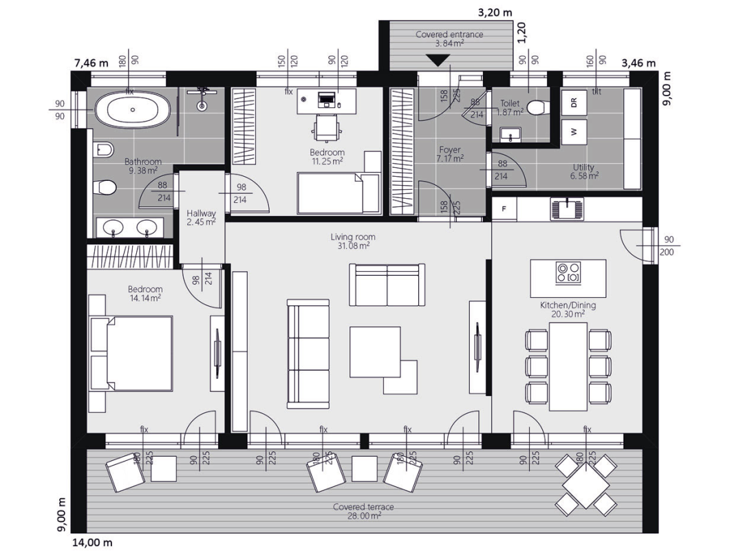 | Terrasse: | - Satteldach 31.84m²